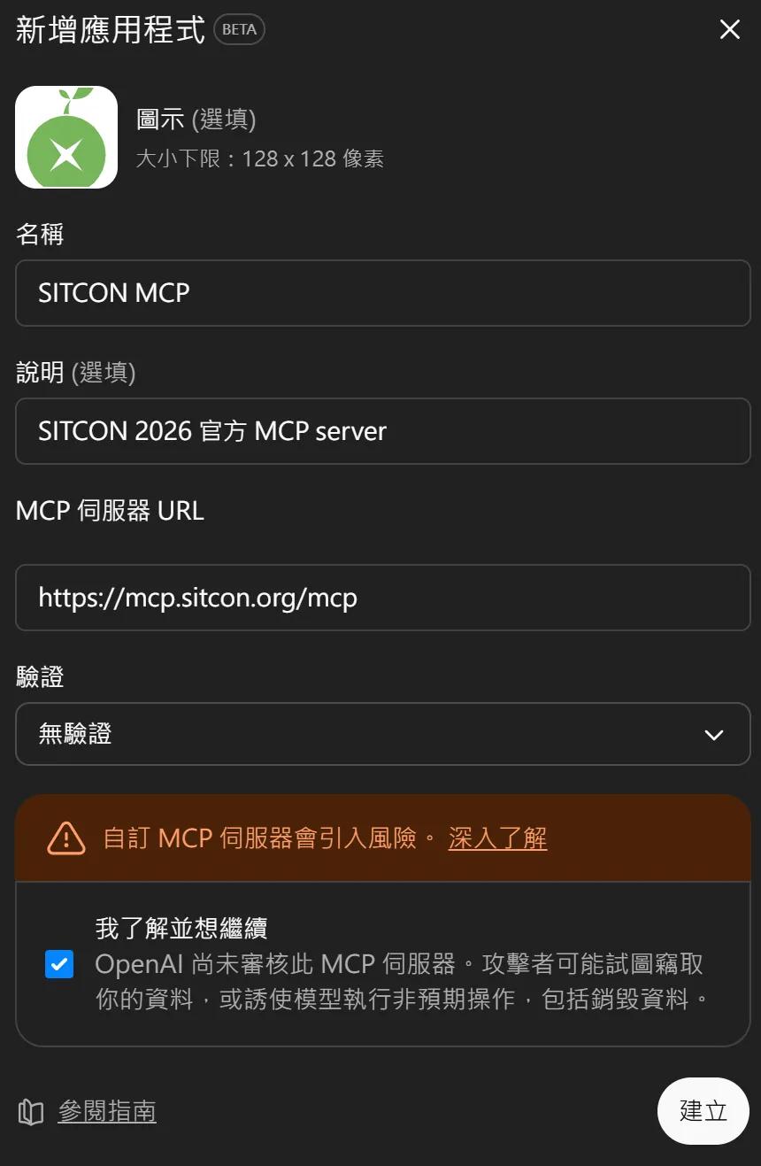 名稱:SITCON MCP(隨便填)