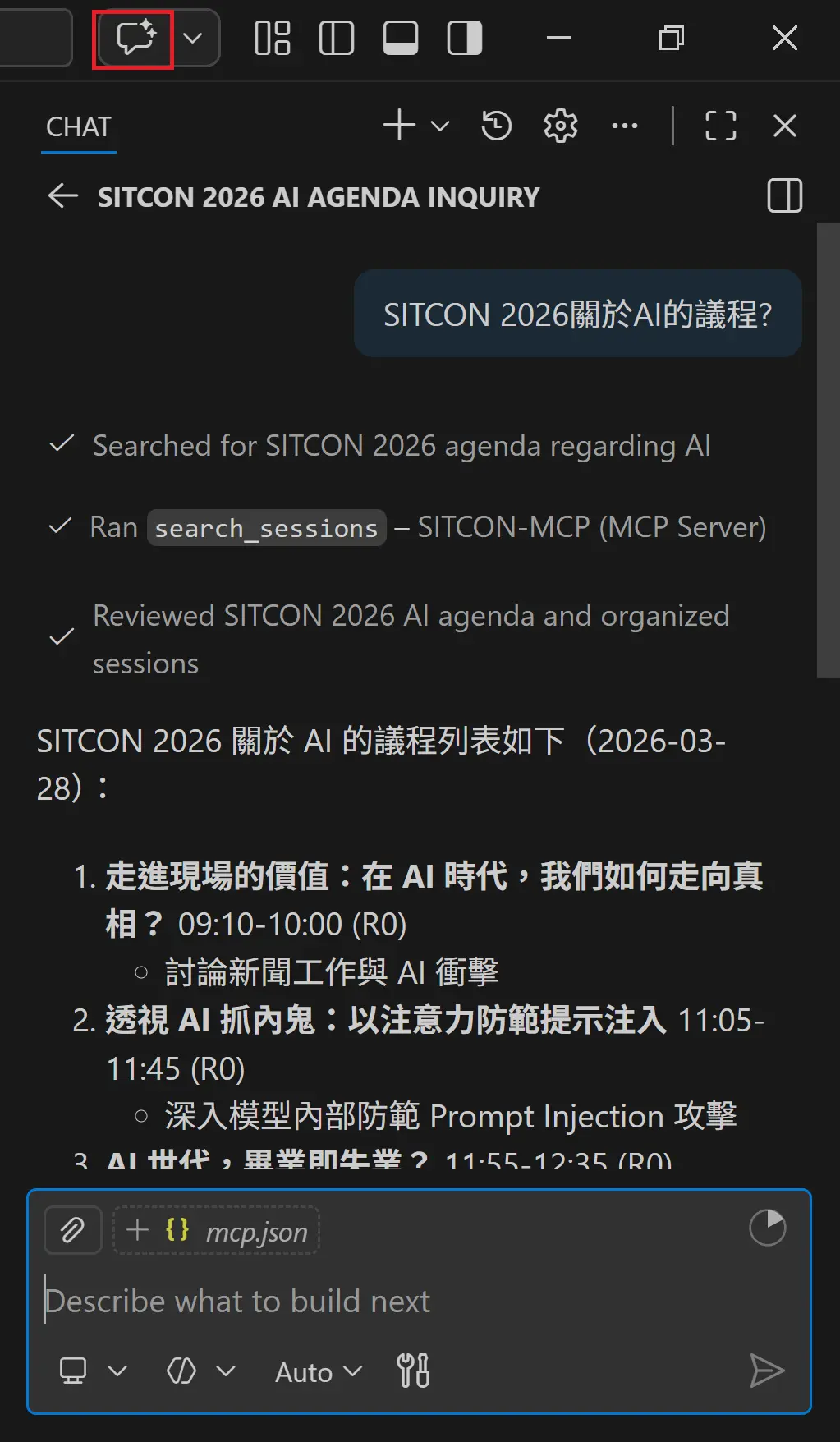 勾選我了解並想繼續(此 MCP 為開源,沒有搜集任何資訊,SITCON 也不會知道你使用過)